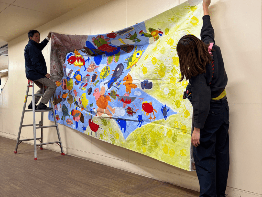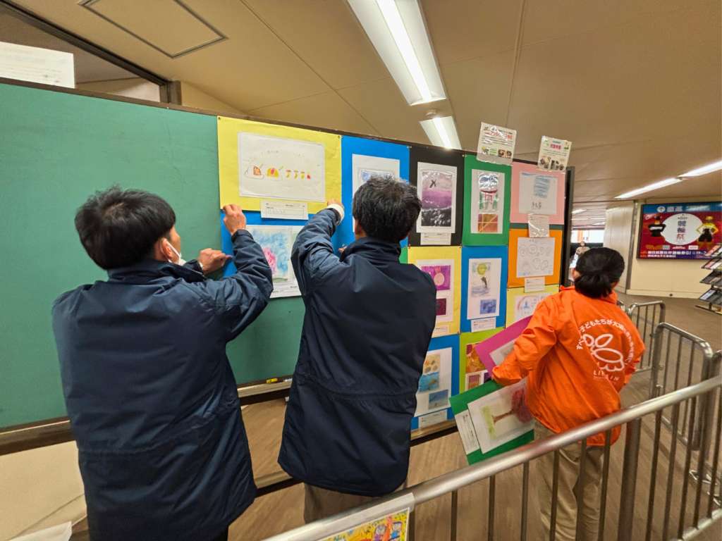 壁一面の子どもたちの活き活きとした作品展、みなさん目を奪われ、足を止めてご覧になっておられました。タイトルやコンセプトもとても素敵で、開催いただけたこと非常に光栄に思っております。