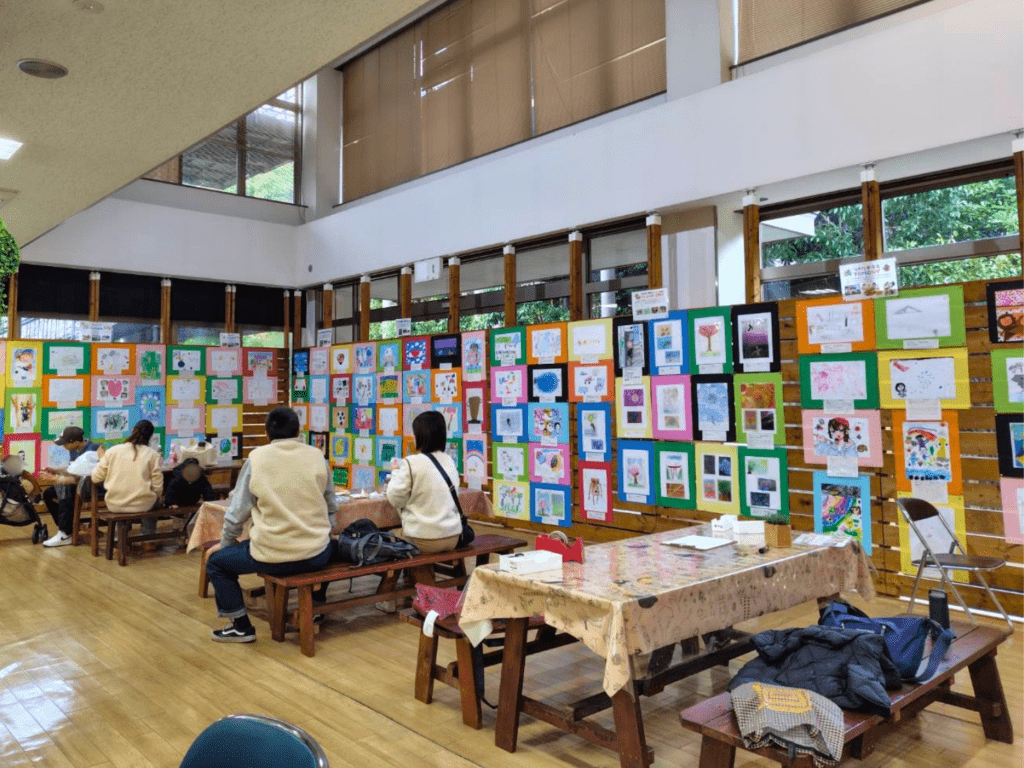 こどもの絵が展示されているのを見て、ご家族の方がそれをとてもほめていて、こどもとご両親のうれしそうな笑顔に、こちらもうれしくなりました。温かいほほえましいひと時でした。