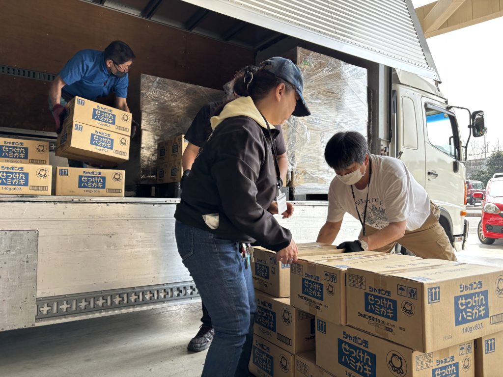 北九州フードバンクセンターは受け取った食品の車への運び込みを一番スムーズに行える施設です。