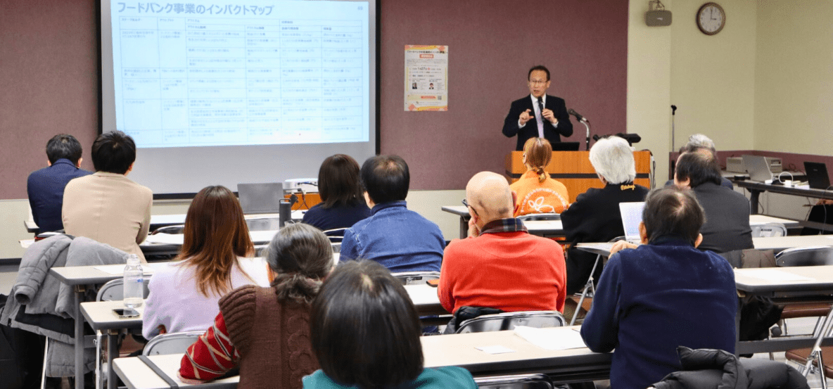2026年1月27日に、レインボープラザ(北九州市八幡東区中央)を会場に「フードバンクの社会的インパクト評価」調査報告会を開催しました。